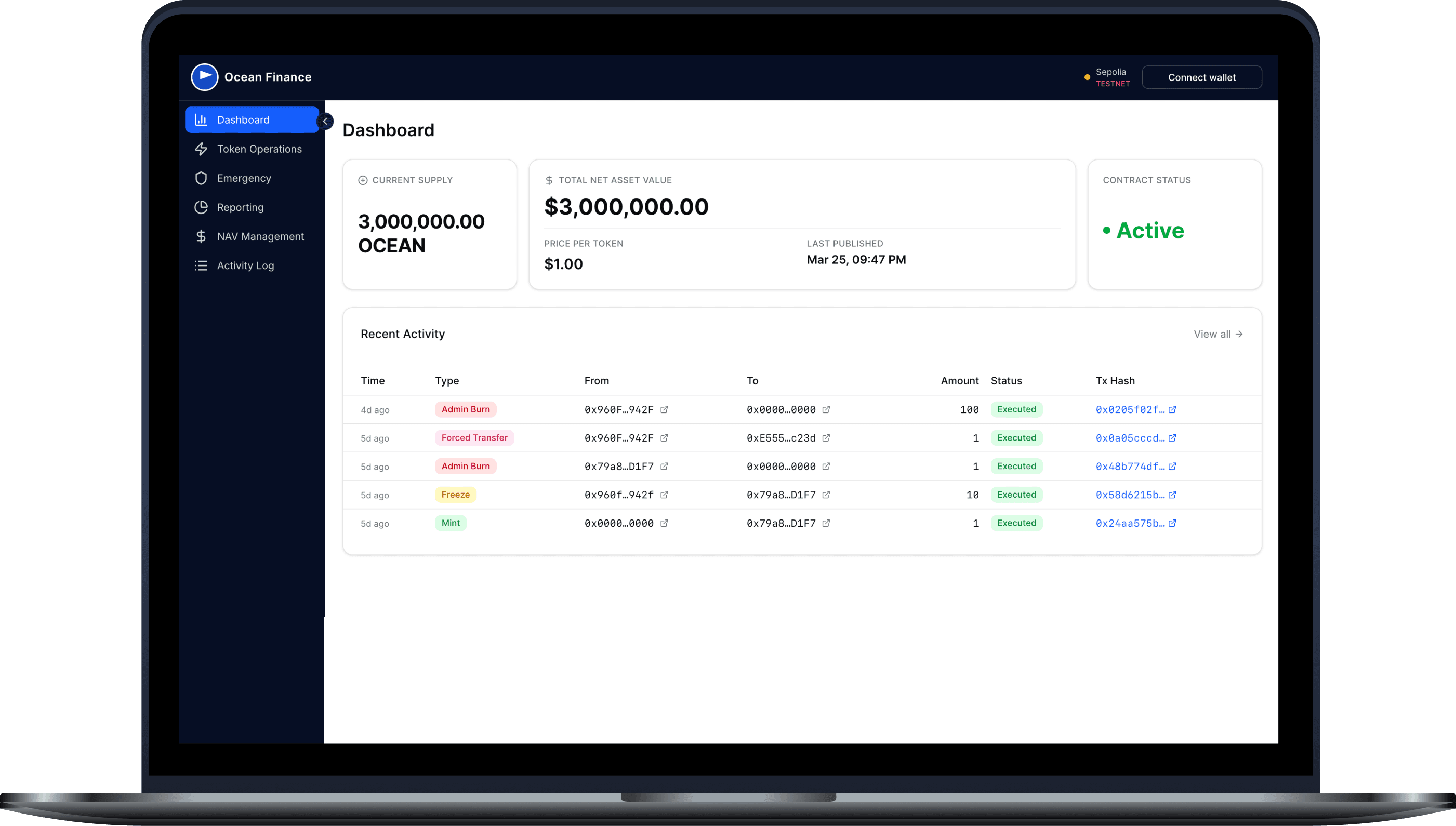The full solution was designed, built, and delivered within the original 12-week engagement. Ocean Finance came away with a working, end-to-end tokenized fund infrastructure — on time and to brief.